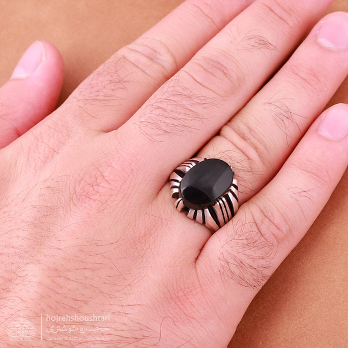 انگشتر نقره عقیق یمنی سیاه مردانه