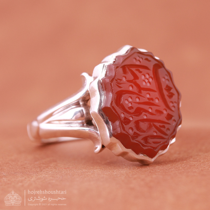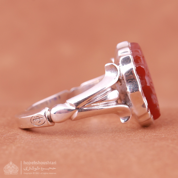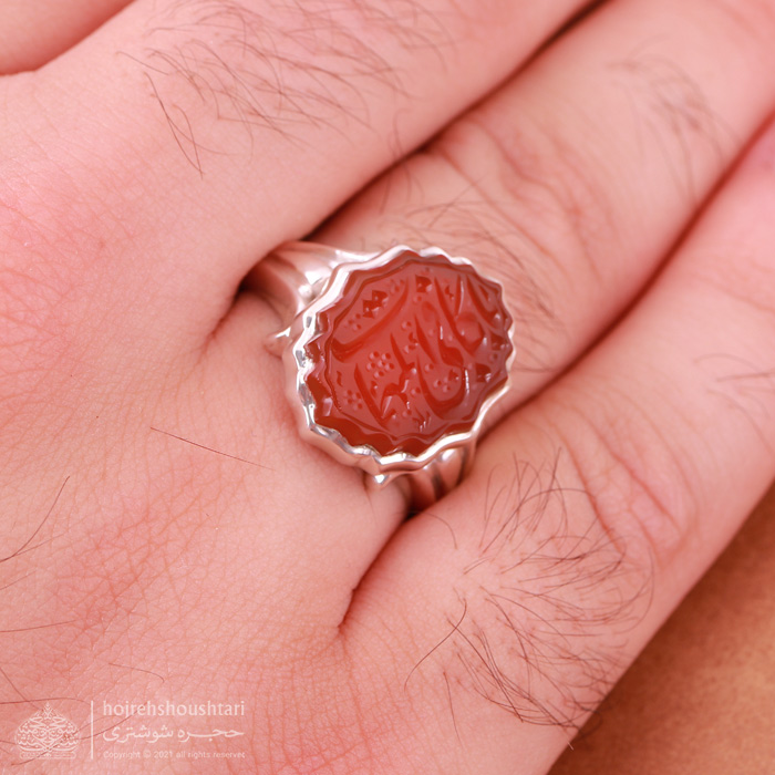 انگشتر مردانه عقیق یمنی نارنجی چهارچنگ