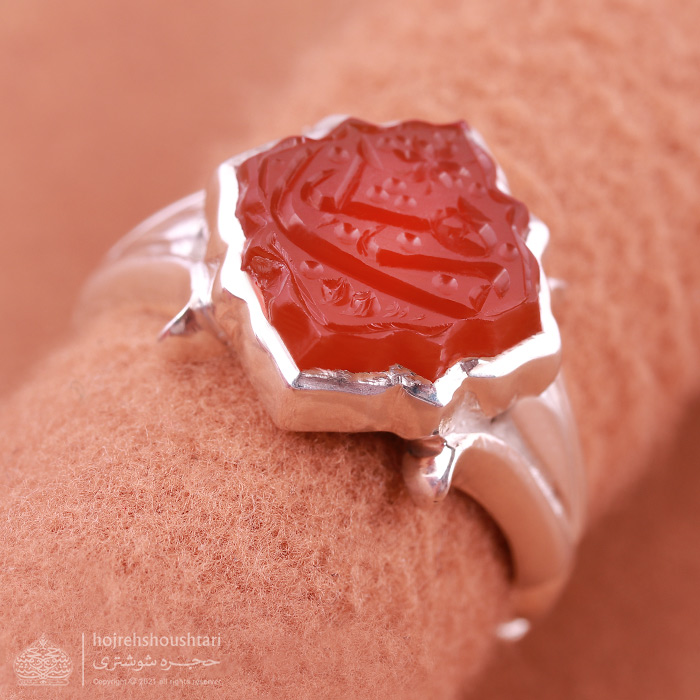 انگشتر مردانه عقیق یمنی نارنجی چهارچنگ