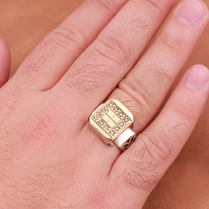 انگشتر نقره مردانه همراه با مخراج برلیان
